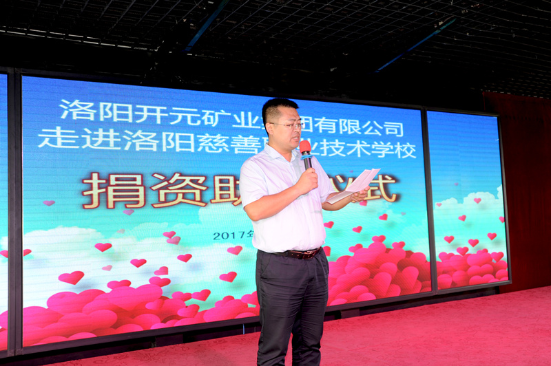 上午10點(diǎn)20分儀式開始,集團(tuán)總經(jīng)理助理叢萬通代表公司發(fā)表講話,他重點(diǎn)談到:近年來,開元礦業(yè)集團(tuán)在董事長許明月的帶領(lǐng)下,強(qiáng)力推進(jìn)企業(yè)發(fā)展的同時(shí),積極開展各項(xiàng)社會公益活動,在慈善愛心公益領(lǐng)域不遺余力,先后為汝陽縣馬溝小學(xué),洛寧縣東宋鎮(zhèn)郭村小學(xué)、兒童福利院、興華鎮(zhèn)中心小學(xué),宜陽縣紅斑狼瘡重病小女孩、文物保護(hù)維護(hù)等捐款捐物累計(jì)超過100萬元。作為洛陽慈善總會理事單位,得知洛陽慈善職業(yè)技術(shù)學(xué)校部分學(xué)生還沒有統(tǒng)一的職業(yè)西服后,集團(tuán)立即聯(lián)系校方,為學(xué)校捐贈60套校服西裝,價(jià)值9000余元;希望同學(xué)們將社會各界的關(guān)愛轉(zhuǎn)化為學(xué)習(xí)的動力,積極回報(bào)社會。