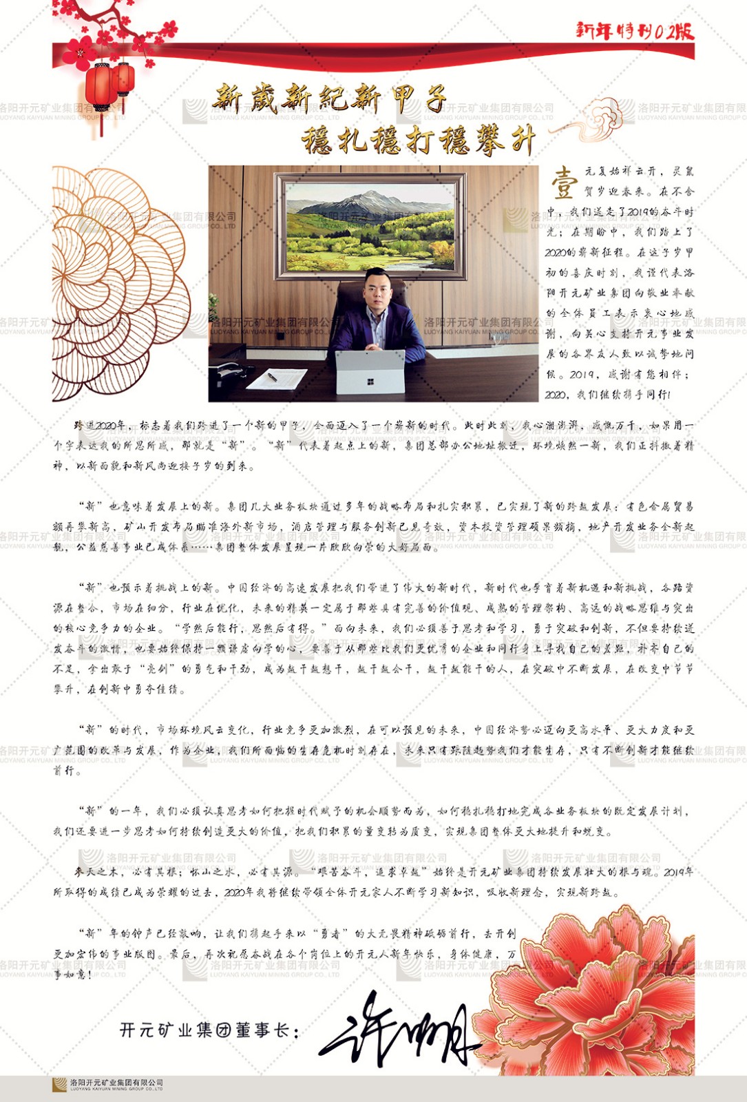 洛陽開元礦業(yè)集團有限公司簡介洛陽開元礦業(yè)集團有限公司,始成立于2006年,位于洛陽市開元大道269號。集團旗下共有五余家全資子公司,業(yè)務(wù)涉及有色金屬礦山開發(fā)、礦產(chǎn)品購銷與進出口貿(mào)易、房地產(chǎn)開發(fā)、文化藝術(shù)、企業(yè)管理與咨詢、資本投資等多個領(lǐng)域。民建河南省委委員、民建河南省委企業(yè)委副主任、民建洛陽市委委員、企業(yè)委主任、洛陽民建企業(yè)家協(xié)會會長許明月是公司創(chuàng)始人,現(xiàn)任洛陽開元礦業(yè)集團有限公司董事長。在礦業(yè)領(lǐng)域,洛陽開元礦業(yè)集團擁有多家實力雄厚的子公司:貴州開元礦業(yè)有限公司探、采礦權(quán)面積共11.33平方公里;興??h銅鑫礦業(yè)有限公司探礦權(quán)面積8.76平方公里,礦山資源潛力巨大;2021年,開元集團與盧氏中科礦業(yè)有限公司開展戰(zhàn)略合作。盧氏中科礦業(yè)有限公司專注于有色金屬的浮選、加工和銷售,擁有強大的技術(shù)支撐平臺,是集探、采、選、冶、研為一體的中大型綜合礦業(yè)企業(yè)。目前,盧氏中科王家河1000噸選礦廠已成功投產(chǎn),雙河金礦、柳關(guān)欒盧鉛鋅礦相繼順利開工,樓房銀礦與圪老灣鉛鋅礦的深部探礦重大突破,標志著礦山版圖取得重大進展,為開元集團后續(xù)發(fā)展奠定了堅實基礎(chǔ)。在文化傳媒領(lǐng)域,洛陽市明月美術(shù)館通過豐富多樣的藝術(shù)展覽、學術(shù)研討和公共教育活動,努力打造一個集展覽、交流、教育、研究為一體的綜合性藝術(shù)平臺。此外,在金融投資領(lǐng)域,開元集團旗下的北京明峰資本管理有限公司專注于投資具有高增長潛力的優(yōu)秀企業(yè),特別是高科技、新能源、環(huán)保等新興產(chǎn)業(yè),為客戶提供個性化的資產(chǎn)配置服務(wù)。在做好企業(yè)經(jīng)營的同時,開元集團始終不忘企業(yè)的社會責任和家國情懷,以突出的愛心公益事跡,開展了一系列公益慈善活動:“民建林”公益事業(yè)通過“思源基金”“幫幫公益”線上公益平臺,與眾多愛心人士籌措資金20余萬元;資助541名貧困大學生共計270余萬元,推進“數(shù)字助力——河南AI人才培養(yǎng)”;捐款10萬元,馳援京津冀、黑龍江洪水地質(zhì)災(zāi)害……公司于2017年底被洛陽市慈善總會評為“洛陽慈善風云榜——十大愛心集體”。洛陽開元礦業(yè)集團有限公司秉承持續(xù)發(fā)展理念,憑借多年來良好的企業(yè)信譽與經(jīng)營業(yè)績,與全國多家企業(yè)建立了良好合作關(guān)系,受到社會各界的一致好評,多次榮獲“納稅標兵”“先進企業(yè)”“招商引資模范企業(yè)”等榮譽稱號。回望來時路,開元人勠力同心,以“闖”的精神和“創(chuàng)”的勁頭,一路披荊斬棘,踏過千山萬水;展望新未來,開元人凝心聚力,不執(zhí)于“舊”,無畏于“新”,秉承“勇于跨越,追求卓越”的企業(yè)精神,乘著國家高質(zhì)量發(fā)展新征程的東風,跨過高山,越過大海,向著集團多元化、國際化的目標,逐夢遠航,跨越前行!